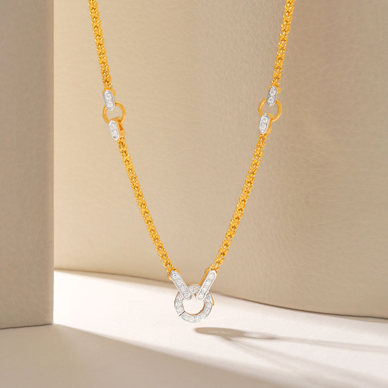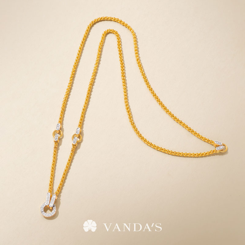 “CARA” สร้อยคอขั้วเพชร ทองคำ 99.99% ลวดลายหูกระต่าย 4 ห่วง