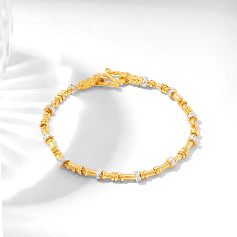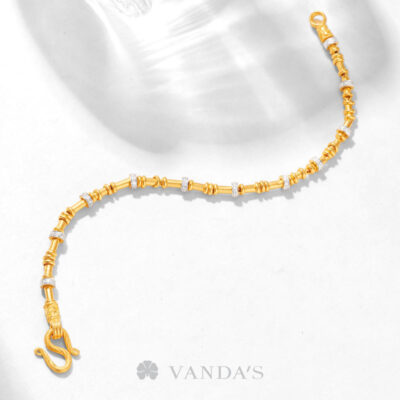 “สร้อยข้อมือทองคำ ดีไซน์ปล้องลูกคิด” รังสรรค์จากทองคำแท้เปอร์เซ็นต์สูงโดยช่างผู้ชำนาญ บรรจงตัดแต่งปล้องทองทีละข้อ และลูกคิดเม็ดจิ๋วทีละเม็ดอย่างประณีต ปรับรูปแบบของมัดลูกคิดให้มีความกลมมนกว่าเดิม ทำให้สวมใส่สบาย โครงสร้างซ่อนรอยต่อ (Seamless Structure) เพื่อลดการสะดุดของสายตา และเพิ่มความต่อเนื่องของลวดลาย และขนาดเท่ากันตลอดทั้งเส้น แฝงกิมมิคเก๋ ๆ — ลูกคิดหมุนได้รอบทิศทาง