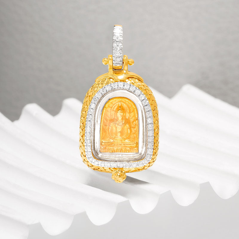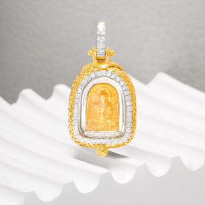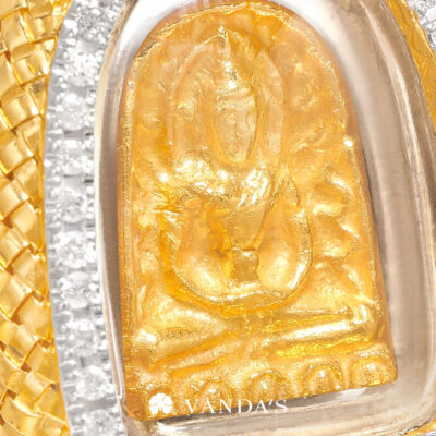 “พระซุ้มกอ” เนื้อทองคำขัดเงา วัดนางพญา ปี 2538 เลี่ยมตลับถักสานทองคำ พิถีพิถันจากช่างทองผู้ชำนาญ เรียบเนียนอย่างไร้รอยต่อ พุทธคุณจัดอยู่ในชุดพระเบญจภาคีที่สูงสุดของพระเครื่องเมืองไทย พุทธคุณด้านแคล้วคลาดจากภยันตราย และเมตตามหานิยม เด่นดังทางให้โชคลาภ