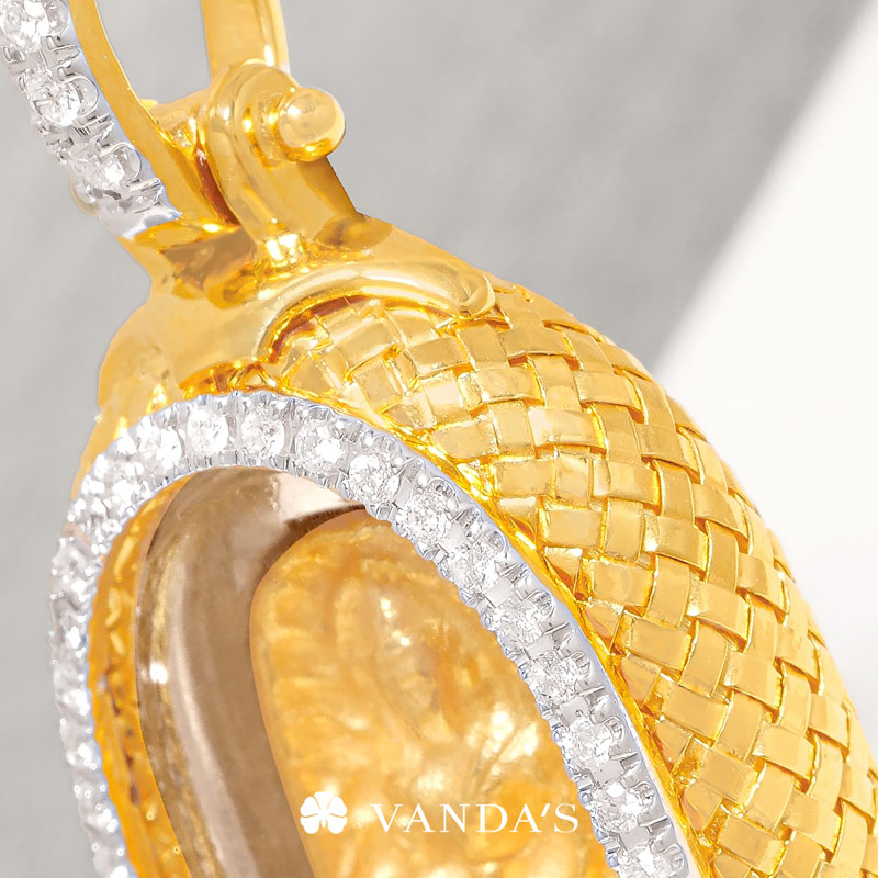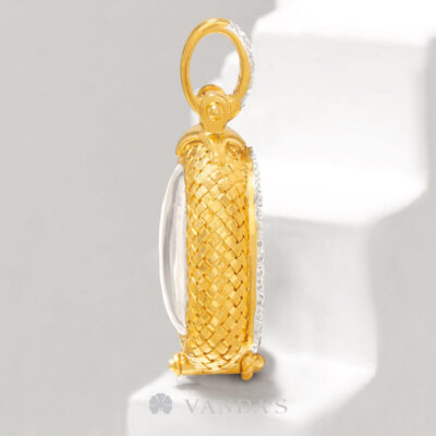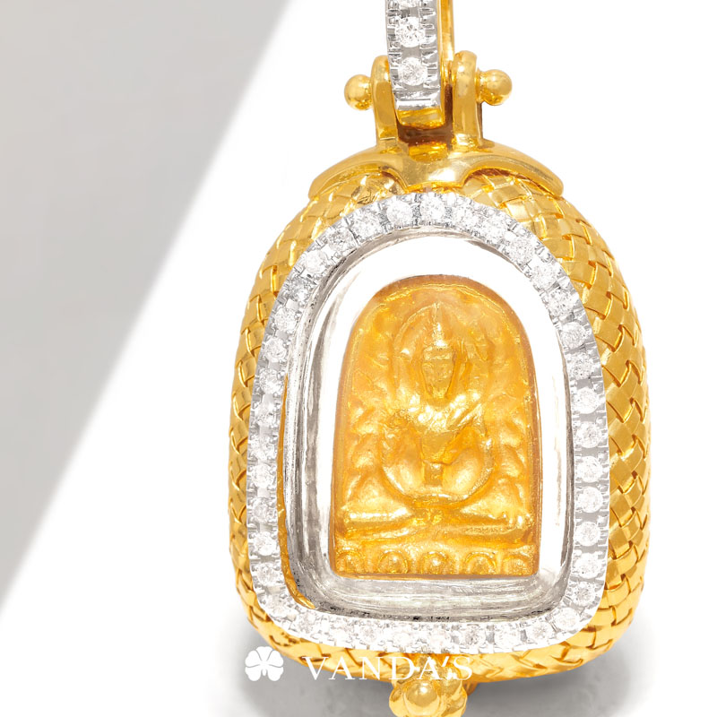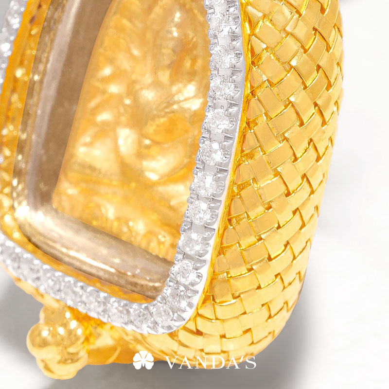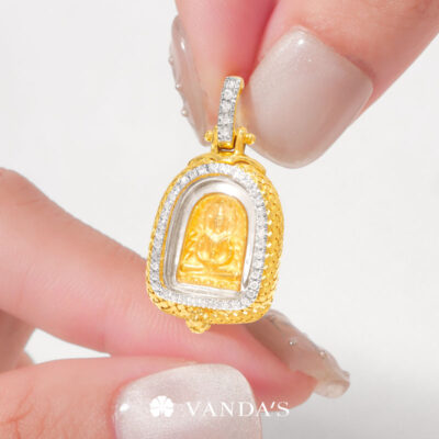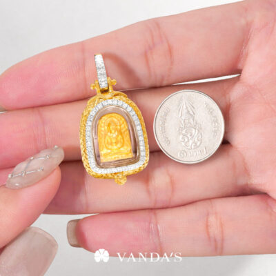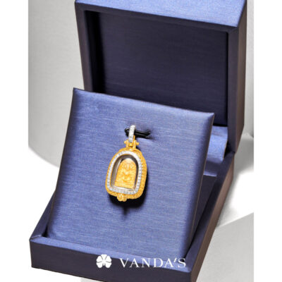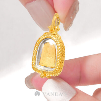จี้พระซุ้มกอ เนื้อทองคำ วัดนางพญา ปี 2538 เลี่ยมตลับถักสานทองคำ