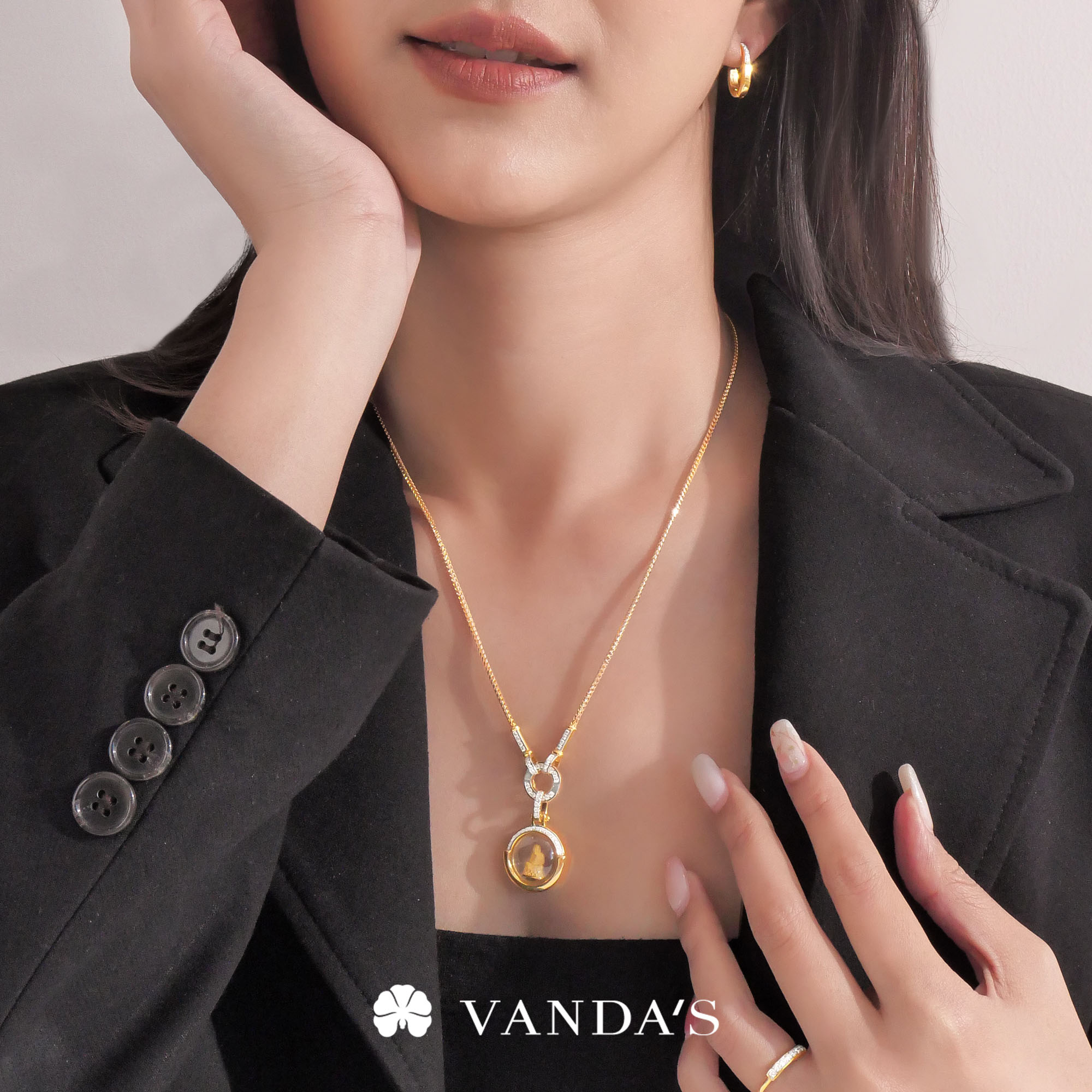 ตัวตลับออกแบบให้กลมมน ให้ความรู้สึกหรูหรา และร่วมสมัย พร้อมประดับด้วยเพชรแท้ ทรงกลม Brilliant Cut น้ำ 100 D-Color/VVS1 จำนวน 23 เม็ด รวมน้ำหนัก 0.23 กะรัต ทำให้ดูมีมิติสวยงาม ระยิบระยับเป็นประกาย จี้ขนาดเล็กกระทัดรัด เหมาะกับใส่ติดตัวตลอดวัน
